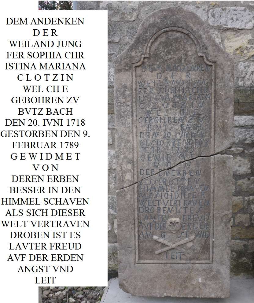 Die Steine waren Sophia Christina Mariana Clotz (1718-1789) und ihrer Schwester Amalia Charlotte Philippina von Avemann geborene Clotz (1722-1793) gewidmet. Beide Frauen gehörten zur Familie des letzten Verwalters der Kommende, Heinrich Wilhelm Julius Alefeld, der hier von 1770 bis zu seiner Flucht vor den französischen Revolutionstruppen 1793 wirkte und mit seinen Verwandten im Herrenhaus in der Kommenturei (heute Bürgerhaus) wohnte.